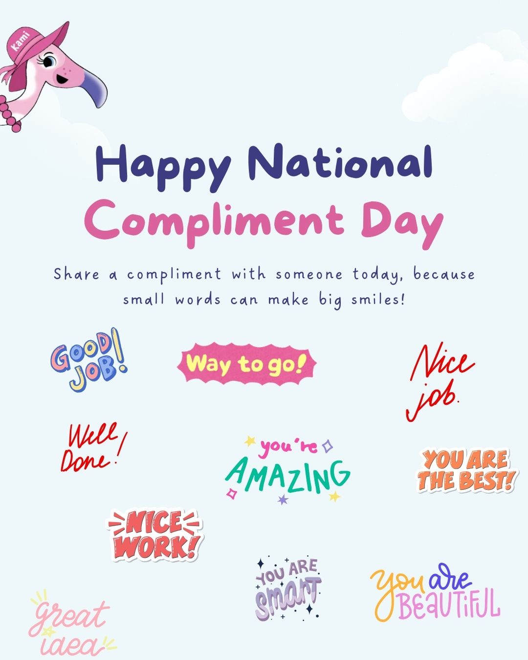In honor of National Compliment Day, let’s spread some BIG HUGS through kind words! Tag a friend in the comments and leave them a compliment. A few positive words can make someone’s whole day brighter, and it’s such a beautiful way to model kindness for kids. 🦩✨ Let’s fill this space with encouragement, smiles, andContinue reading “National Compliment Day”