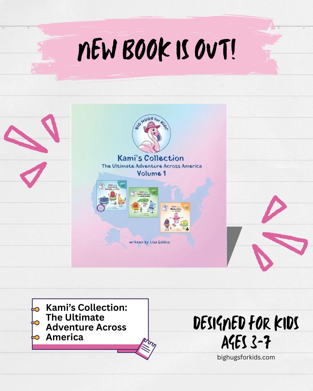 📚🦩 BIG NEWS! The Hardcover Collection is out now! Kami’s Collection: The Ultimate Adventure Across America is officially available — bringing together three best-selling BIG HUGS for Kids stories in one beautiful hardcover book. Designed for kids ages 3-7, this special collection follows Kami the Flamingo as she visits three of her fifty state friendsContinue reading “The Hardcover Collection is out now!”